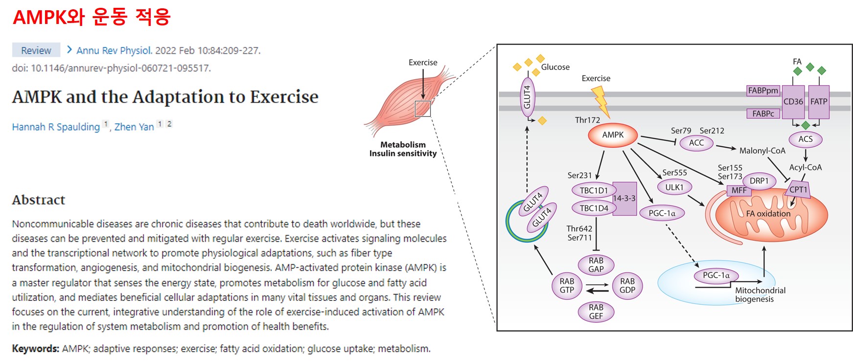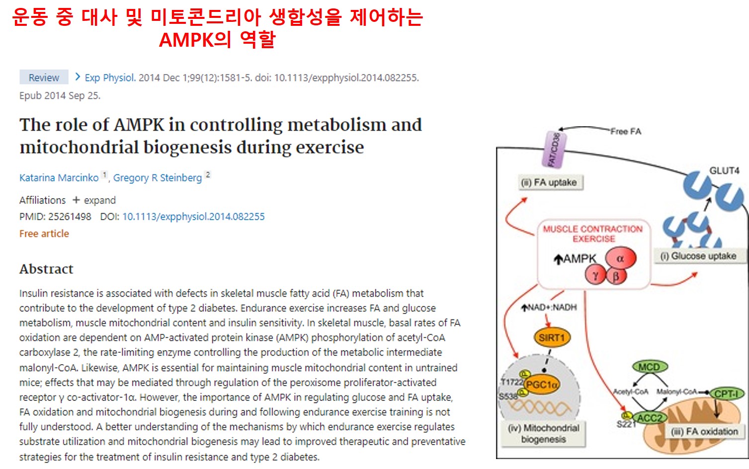 [논문서칭 2] 운동 중 대사 및 미토콘드리아 생합성을 제어하는 ​​AMPK의 역할