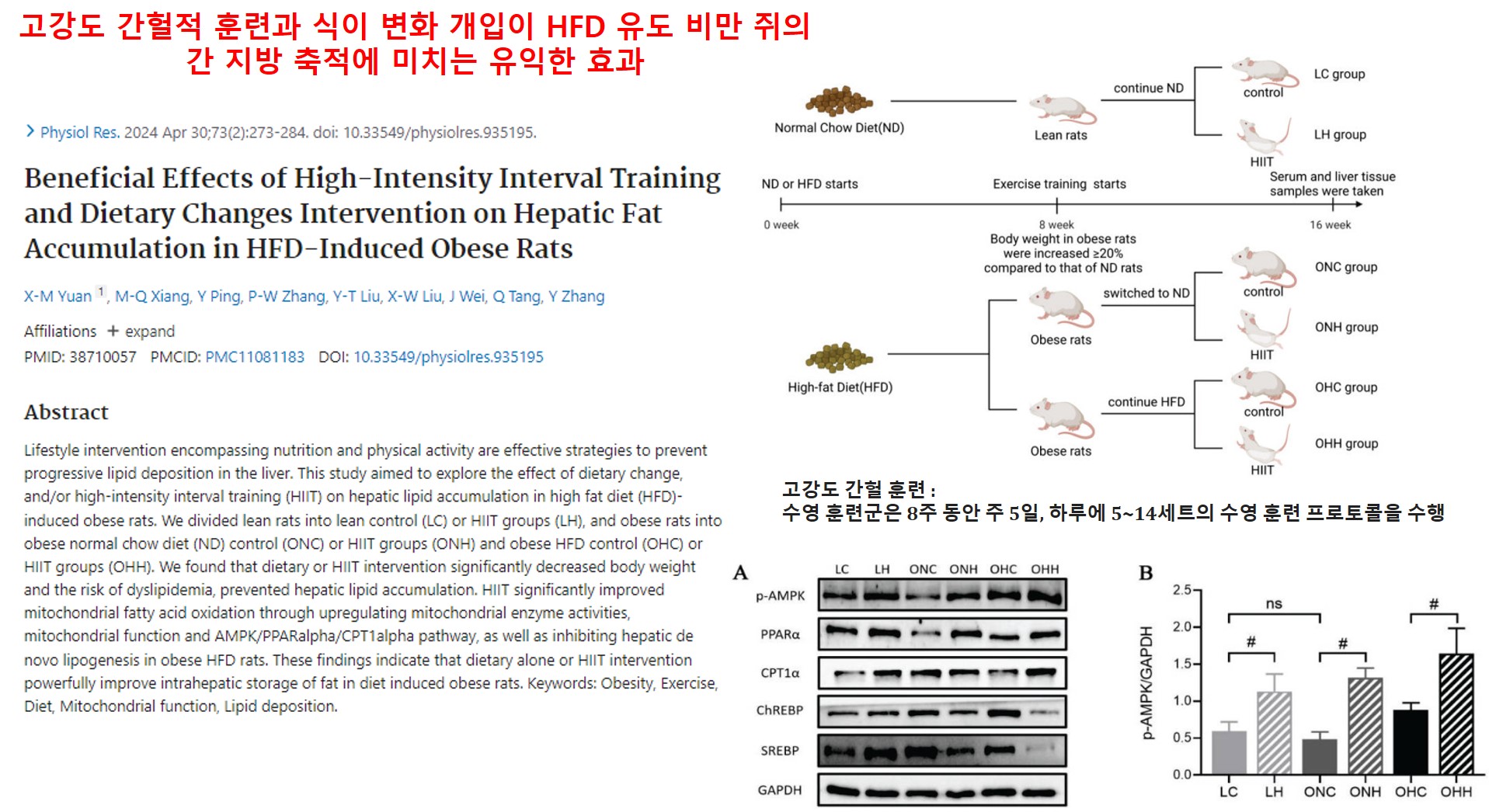 [논문서칭 5] 고강도 간헐적 훈련과 식이 변화 개입이 HFD 유도 비만 쥐의 간 지방 축적에 미치는 효과