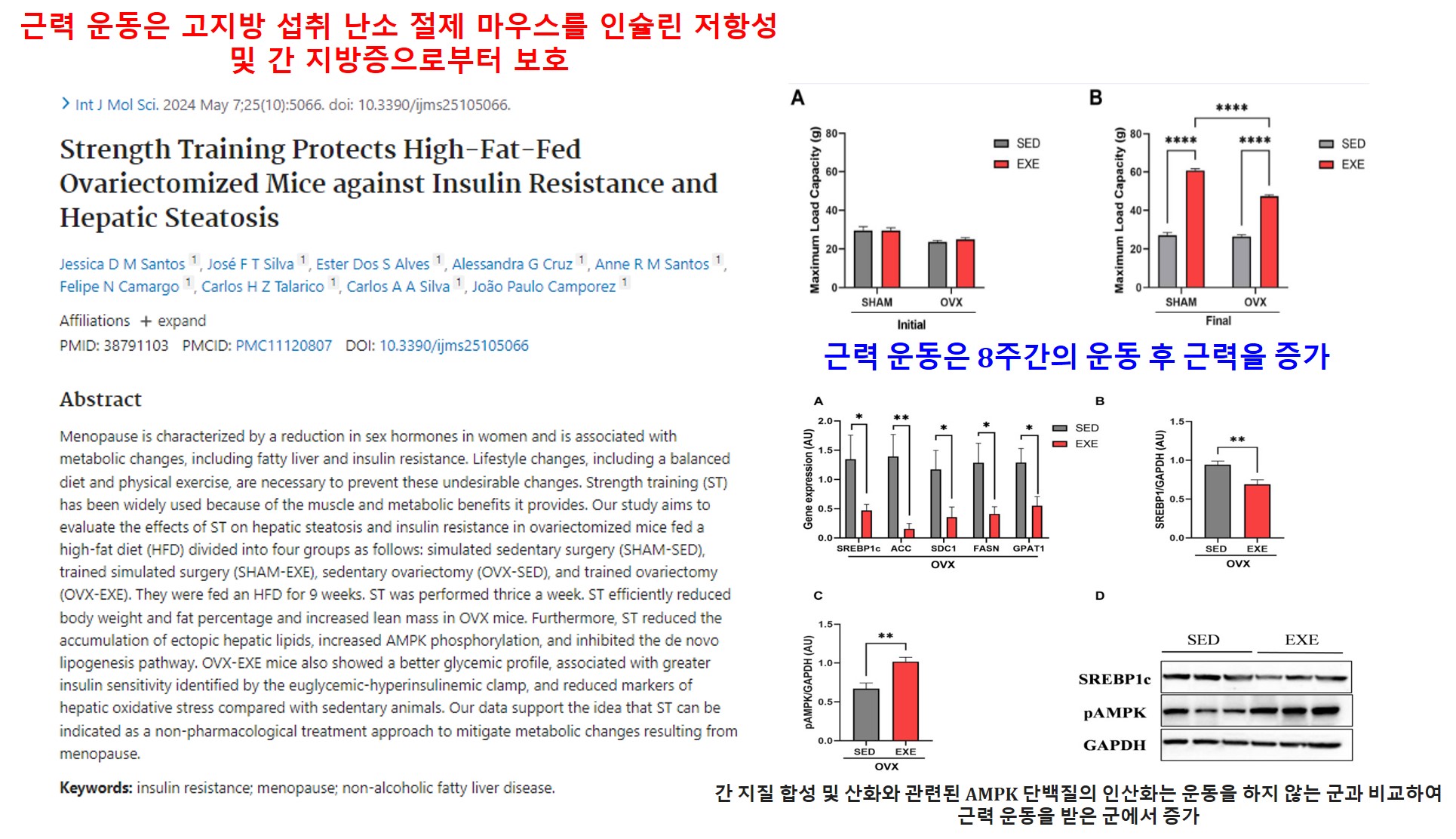 [논문서칭 4] 근력 운동은 고지방 섭취 난소 절제 마우스를 인슐린 저항성 및 간 지방증으로부터 보호