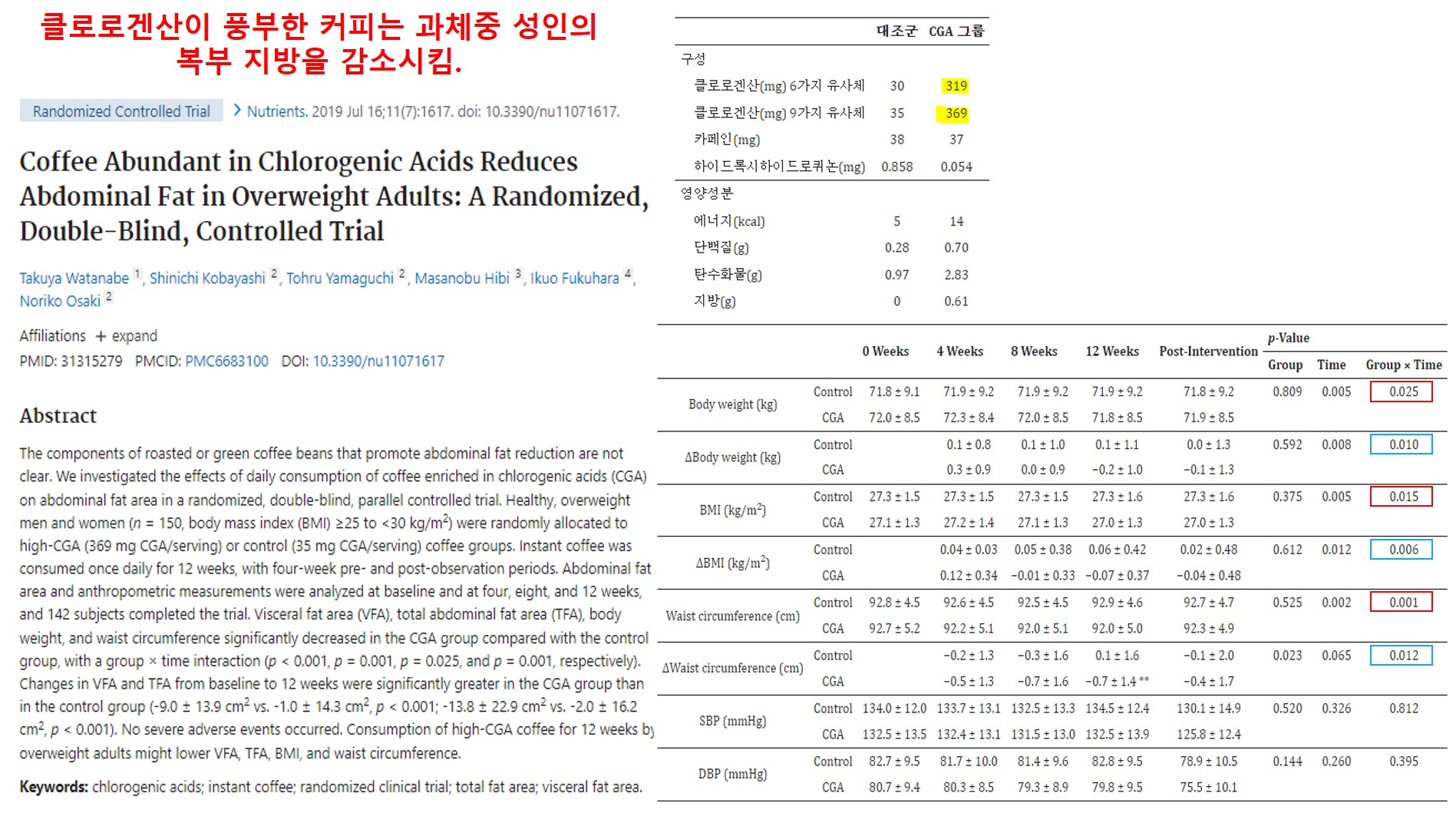 [논문서칭 5] Lactobacillus gasseri BNR17 보충제는 비만 성인의 내장 지방 축적과 허리 둘레를 감소